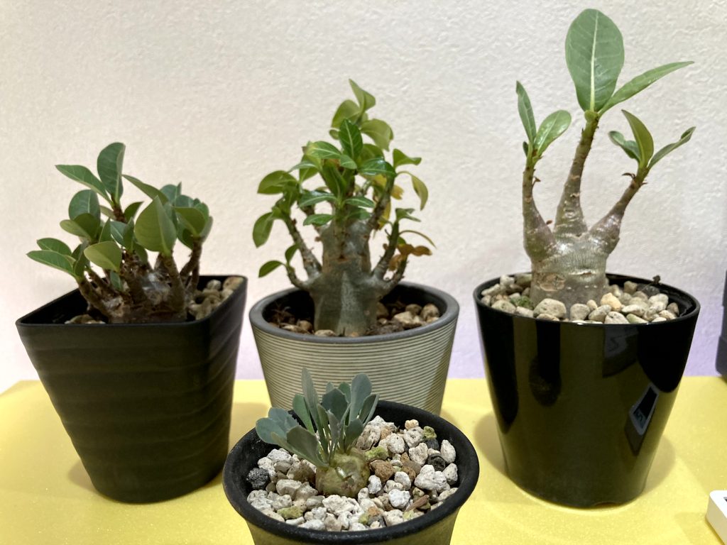 手前のオトンナ・カカリオイデスと両サイドのアデニウムを購入